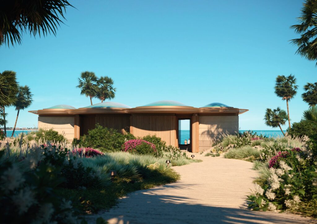 Архитектурную концепцию курорта разработало бюро Foster + Partners, интерьеры — Kristina Zanic Consultants. Плавные линии зданий, натуральные материалы и произведения саудовского искусства формируют сдержанную визуальную среду, не конкурирующую с окружающим пейзажем. Дизайн отсылает к формам кораллов и естественной геометрии побережья, сохраняя ощущение спокойствия и визуального баланса.